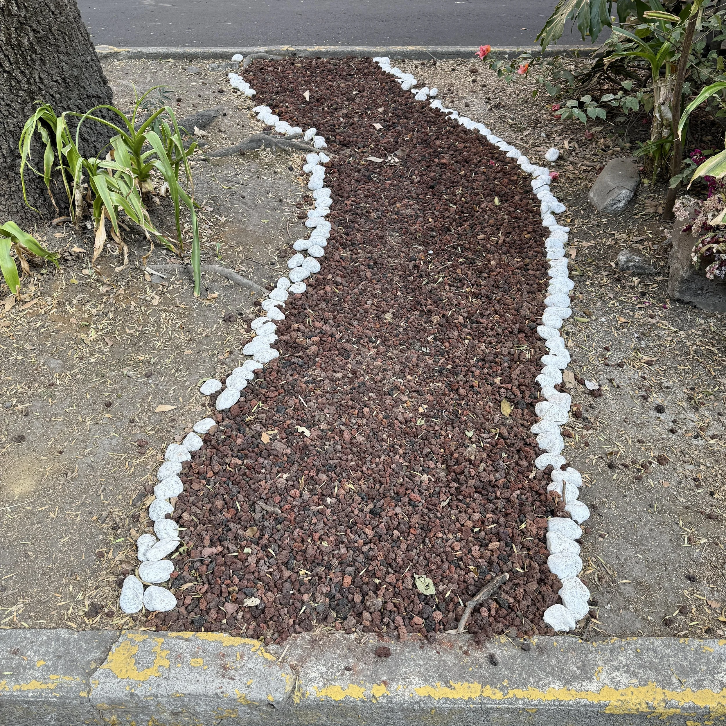 “Here, not there,” this little path asks. “Let me take you somewhere.” It transforms a hasty cut into a purposeful moment, a daily moment into a journey. It is a practical solution, caring for the planted meridian and how we experience it.